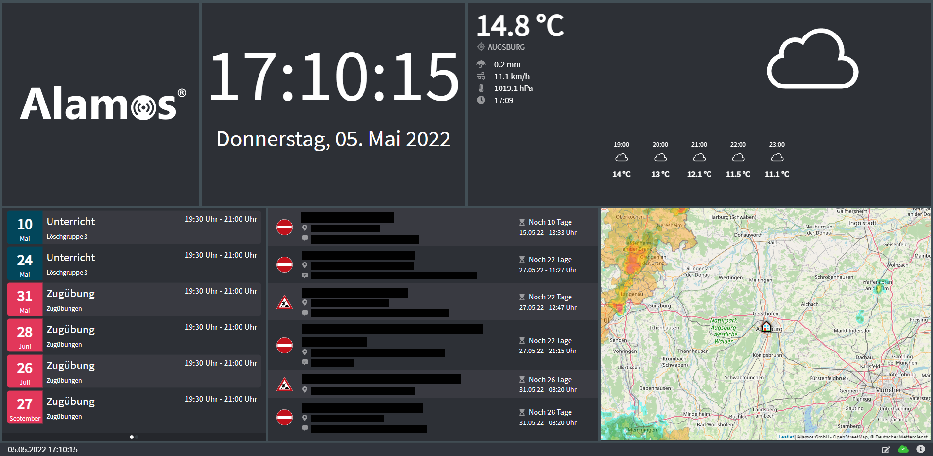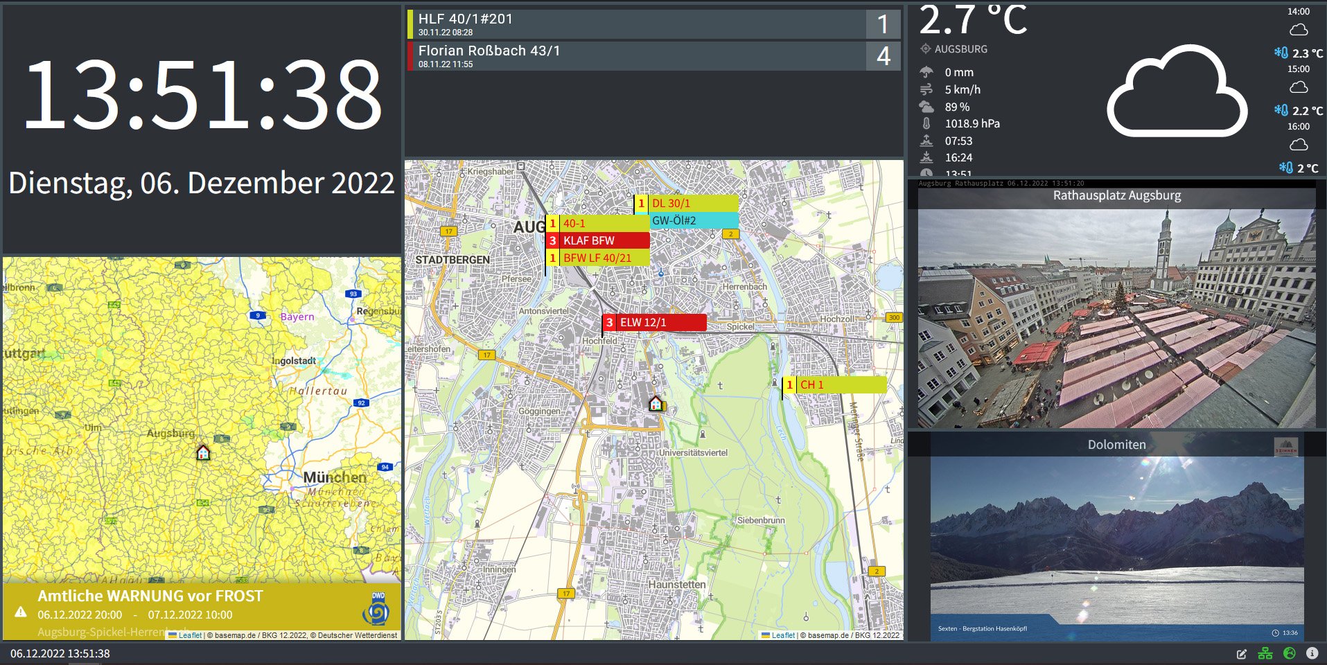 Für Zeiten, in welchen kein Alarm angezeigt wird, können Sie unseren AMweb beliebig um zusätzliche Informationen erweitern. Eine gesonderte Ruheperspektive lässt sich unabhängig von der Alarmierung definieren. Im Alarmfall wechselt diese anschließend automatisch in die Alarmperspektive.