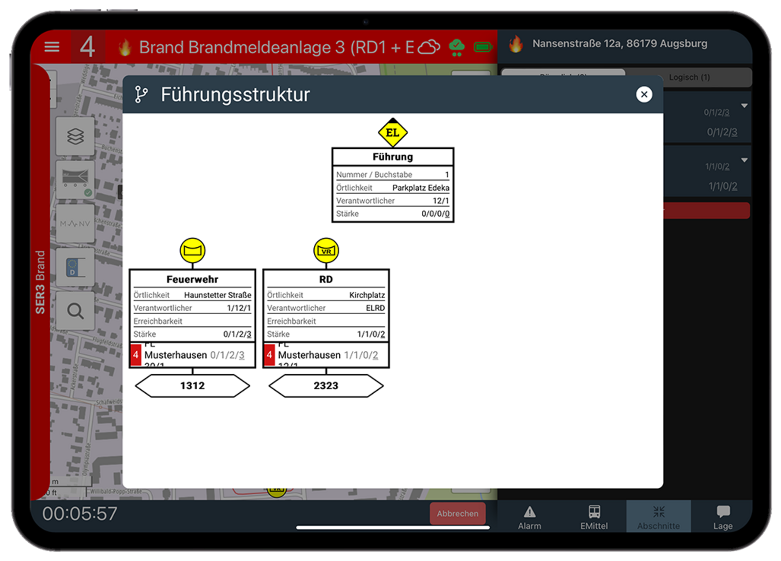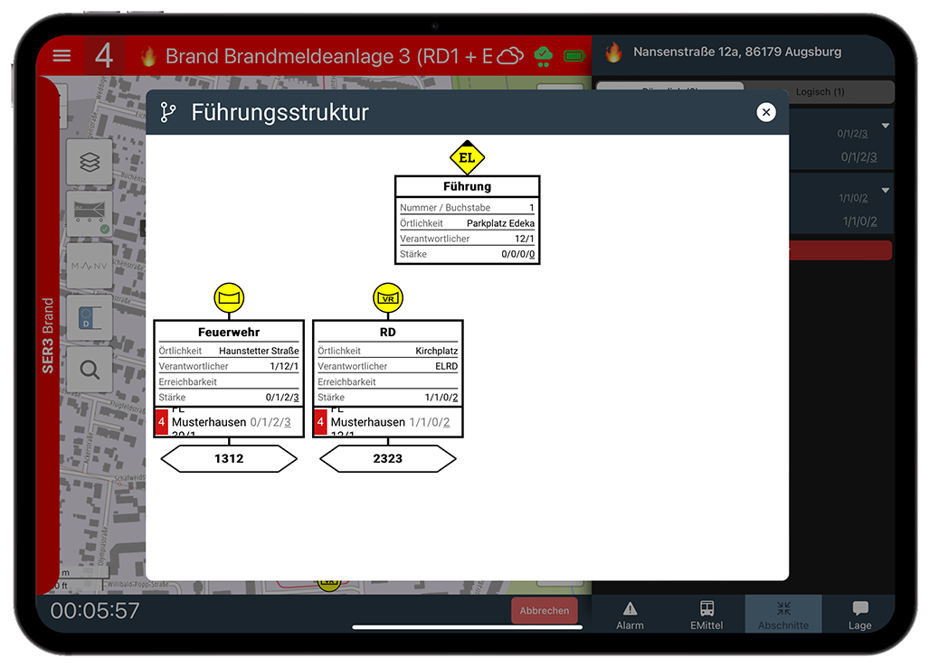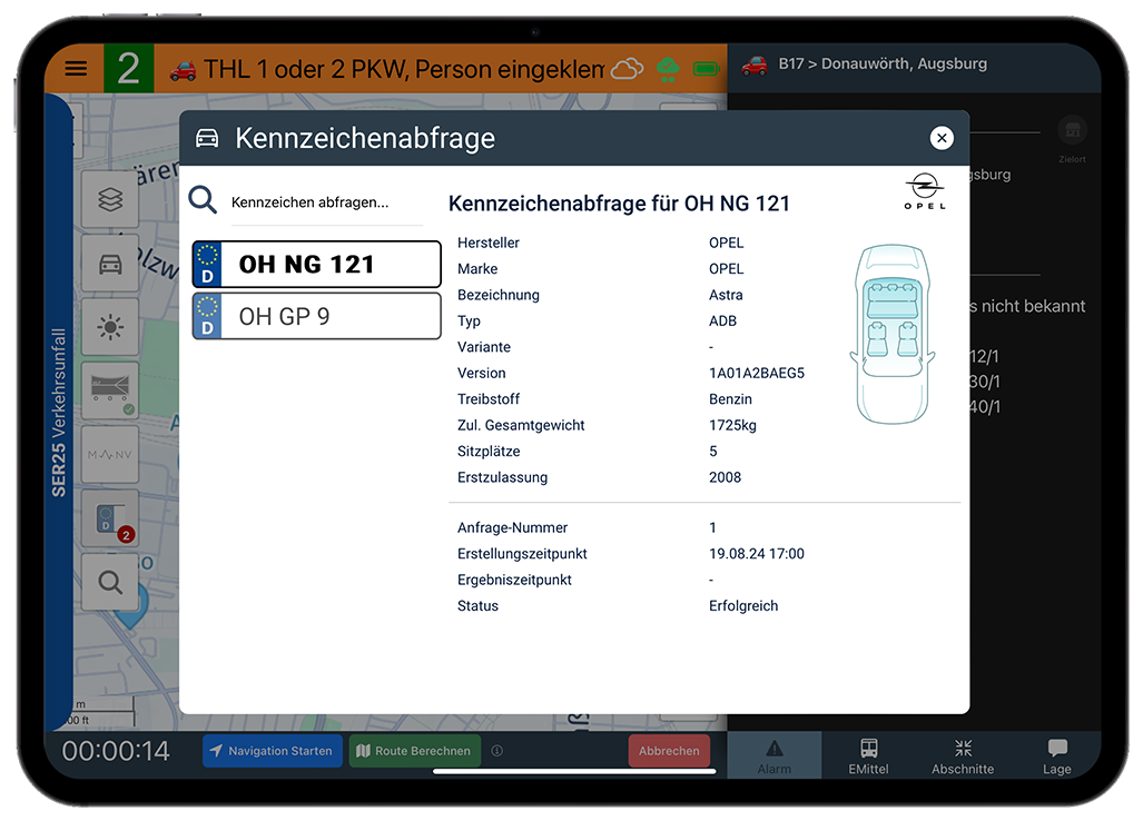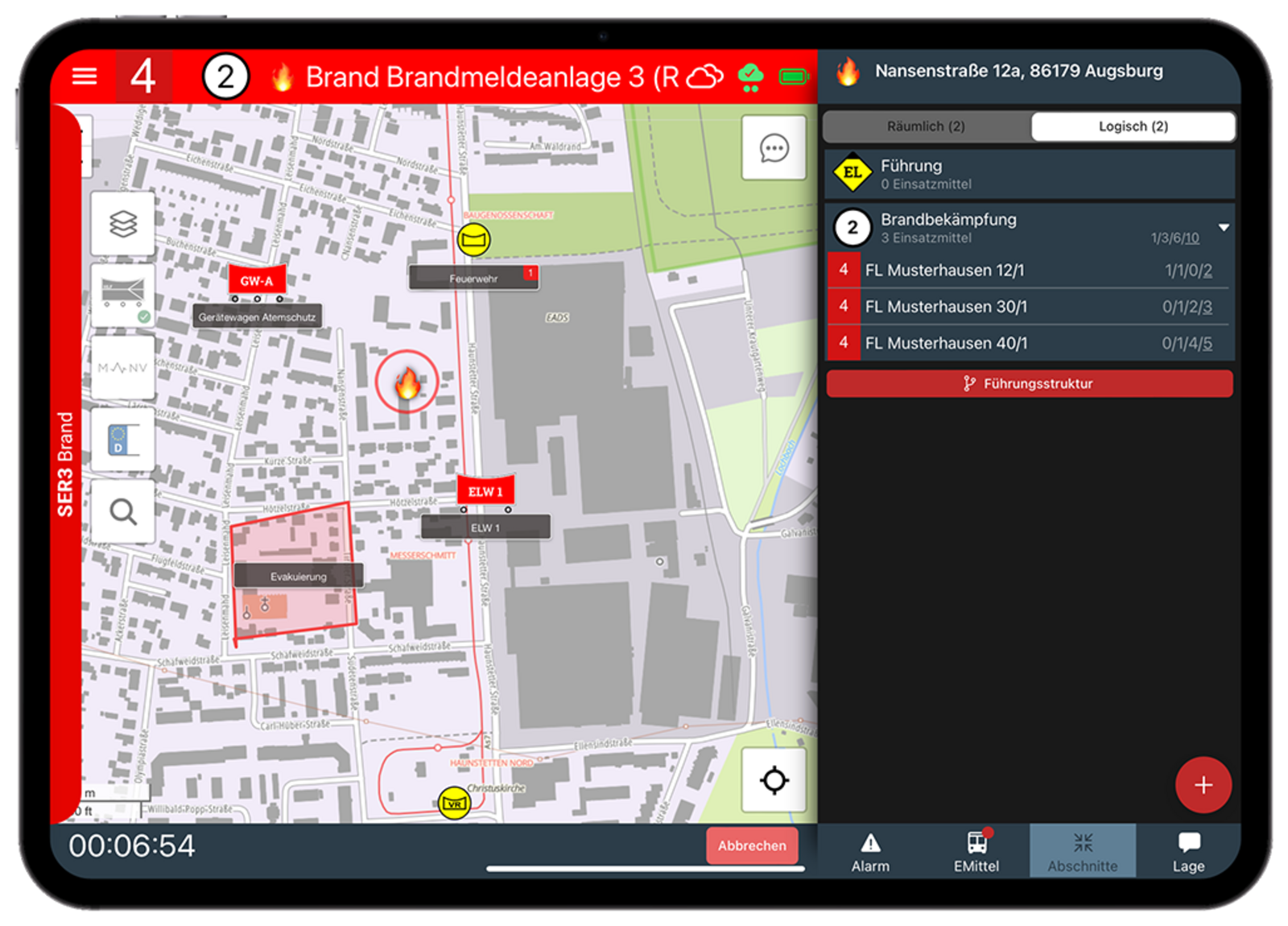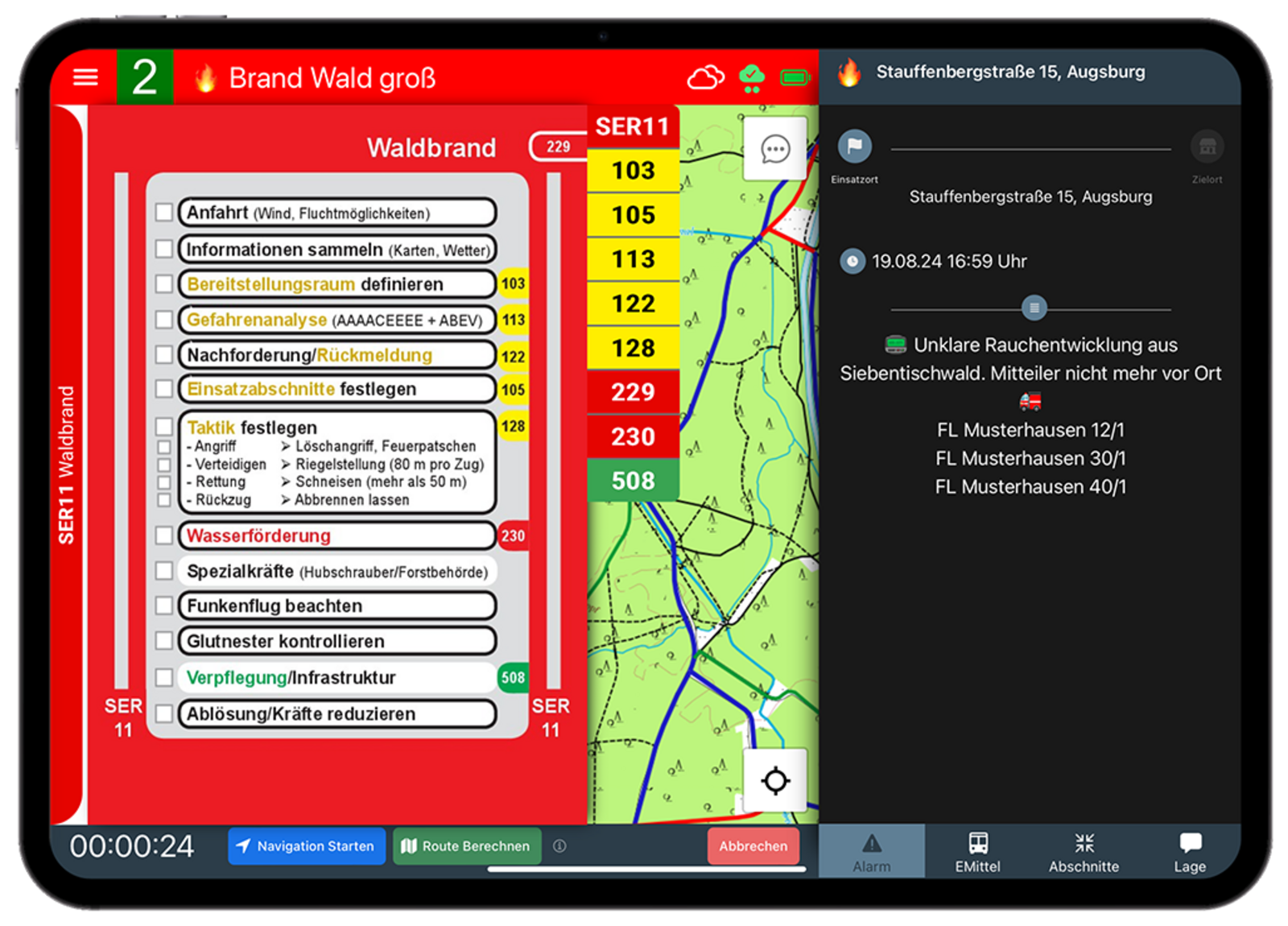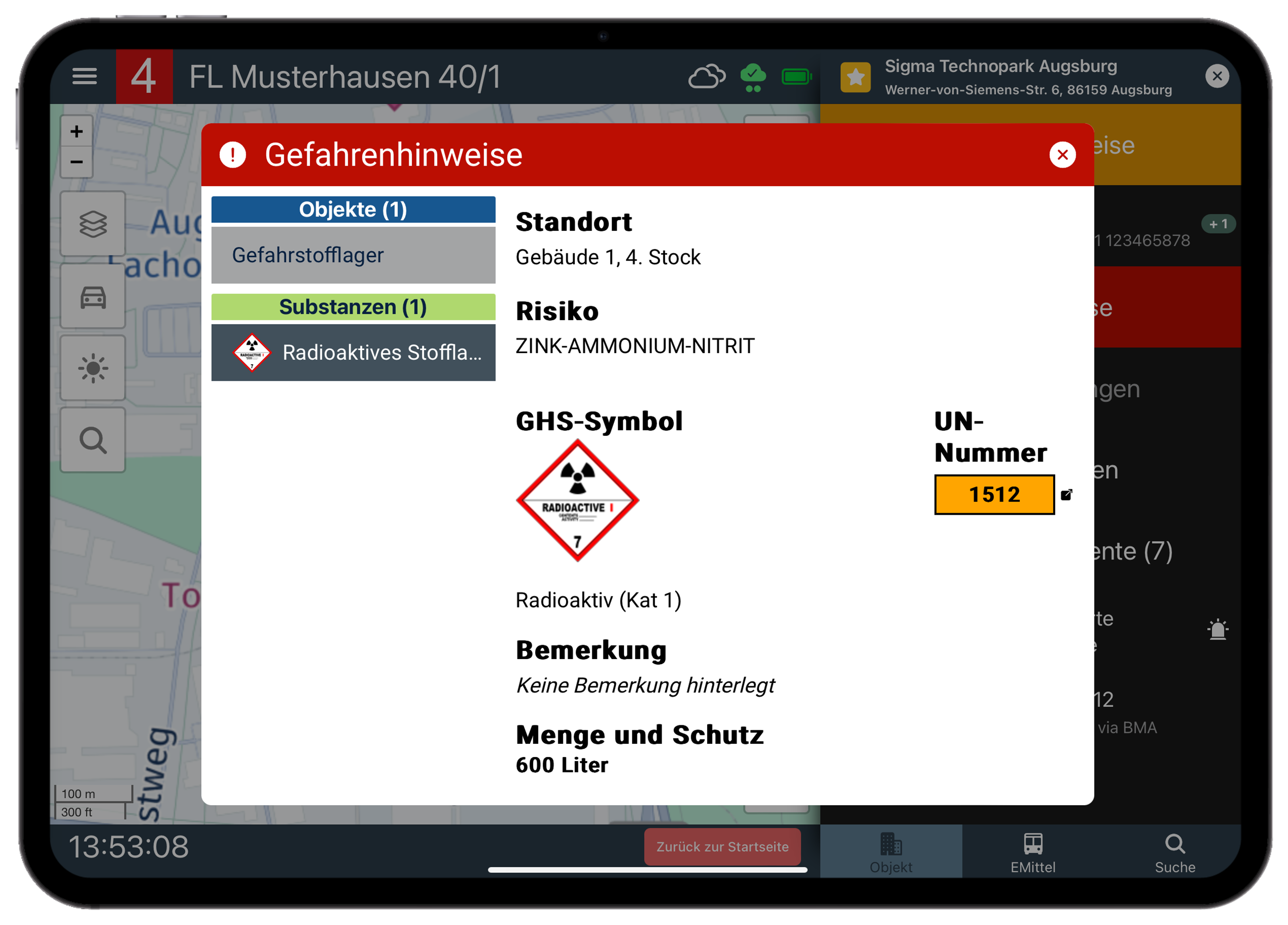 Der aMobile PRO ermöglicht es Ihnen, einfach und übersichtlich alle relevanten Informationen zu einem anstehenden Einsatz anzeigen zu lassen. In der übersichtlichen Oberfläche haben Sie Zugriff auf den aktuellen Status (FMS und TETRA), das Einsatzstichwort, die Zieladresse und sonstige Informationen. Sollte die Alarmierung von einer Brandmeldeanlage empfangen worden sein, so kann der aMobile PRO weiterführende Informationen dazu darstellen – inklusive einer vorhandenen Laufkarte.
