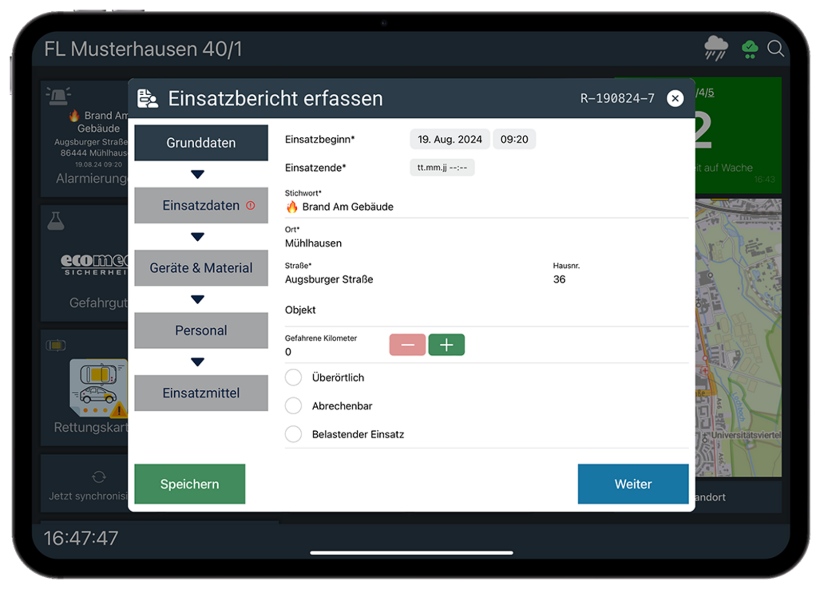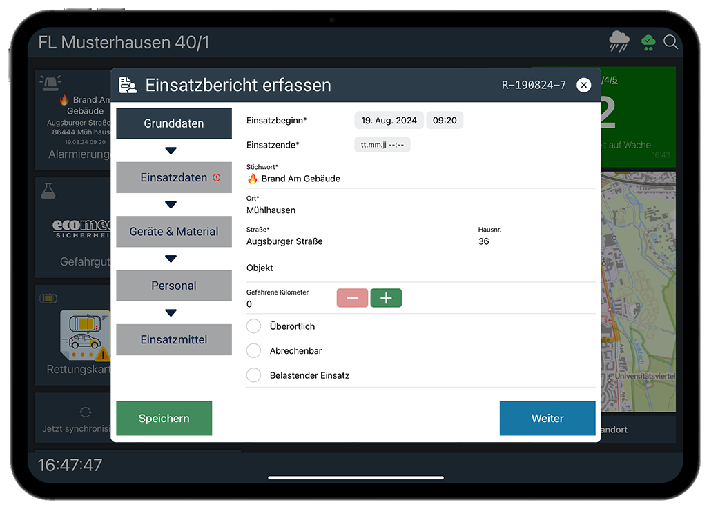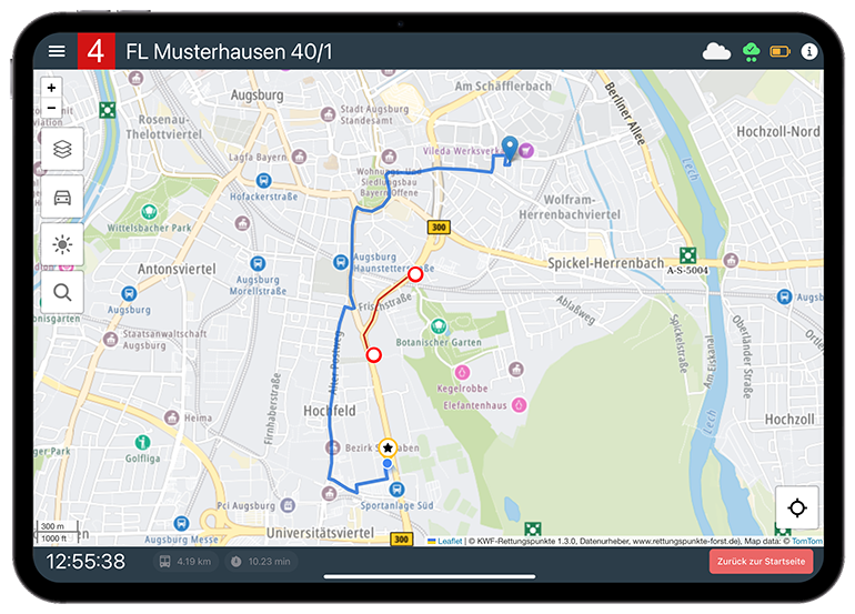 Durch die optionale Integration von HERE Kartenmaterial, bietet der aMobile PRO eine automatische Routenberechnung zur Einsatzstelle. Hierbei steht es Ihnen frei, ob Sie direkt zur Einsatzstelle navigieren, oder zu hinterlegten Bereitstellungsräumen und Zufahrten. Als einer der wenigen Anbieter auf dem Markt, unterstützt HERE eine Navigation für Einsatzfahrzeuge. Sie haben im aMobile PRO jederzeit die Möglichkeit, diese spezielle Berechnung zu nutzen.