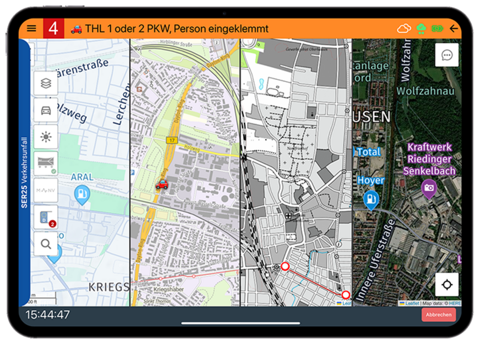 Jeder Einsatz erfordert eine andere Art von Kartenmaterial: ob Straßenkarten bei Unfällen, topographische Karten im Gelände oder Satellitenbilder bei Waldbränden, der aMobile PRO bietet dank einer flexiblen Schnittstelle Zugriffe auf viele verschiedene Karten – kostenfrei und kostenpflichtig!