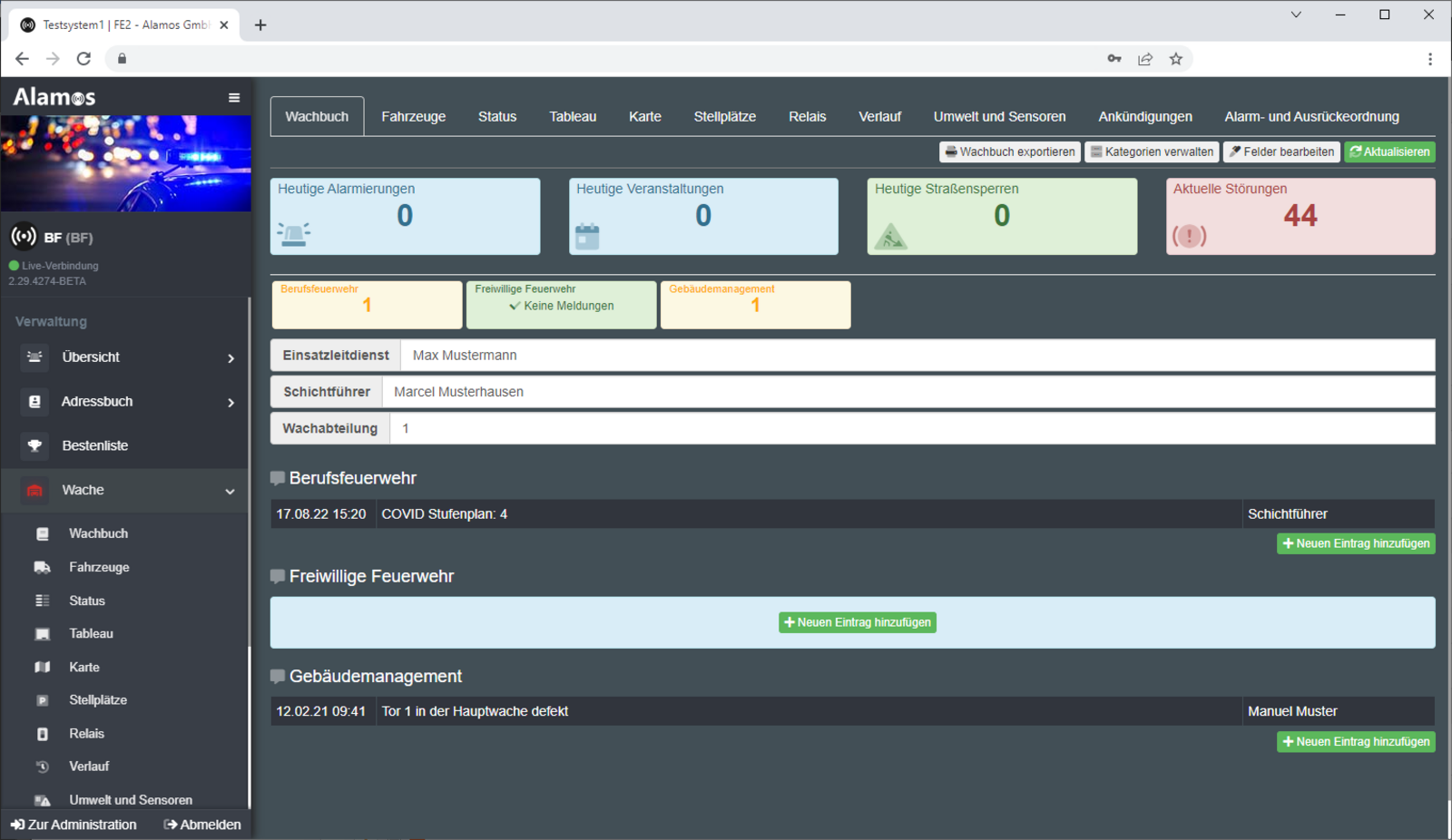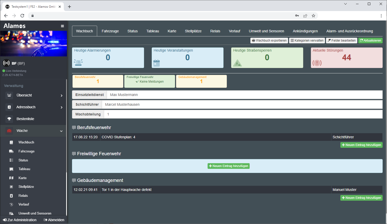 FE2 ist die perfekte Ergänzung für Ihren täglichen Wachdienst. Das digitale Wachbuch ermöglicht es, sich jederzeit einen schnellen Überblick über die Ereignisse der letzten oder kommenden 24 Stunden zu verschaffen. Dank der integrierten Wachalarm und Gebäudesteuerung inklusive Wachdurchsage können Sie Vorgänge auf höchstem Maße automatisieren.