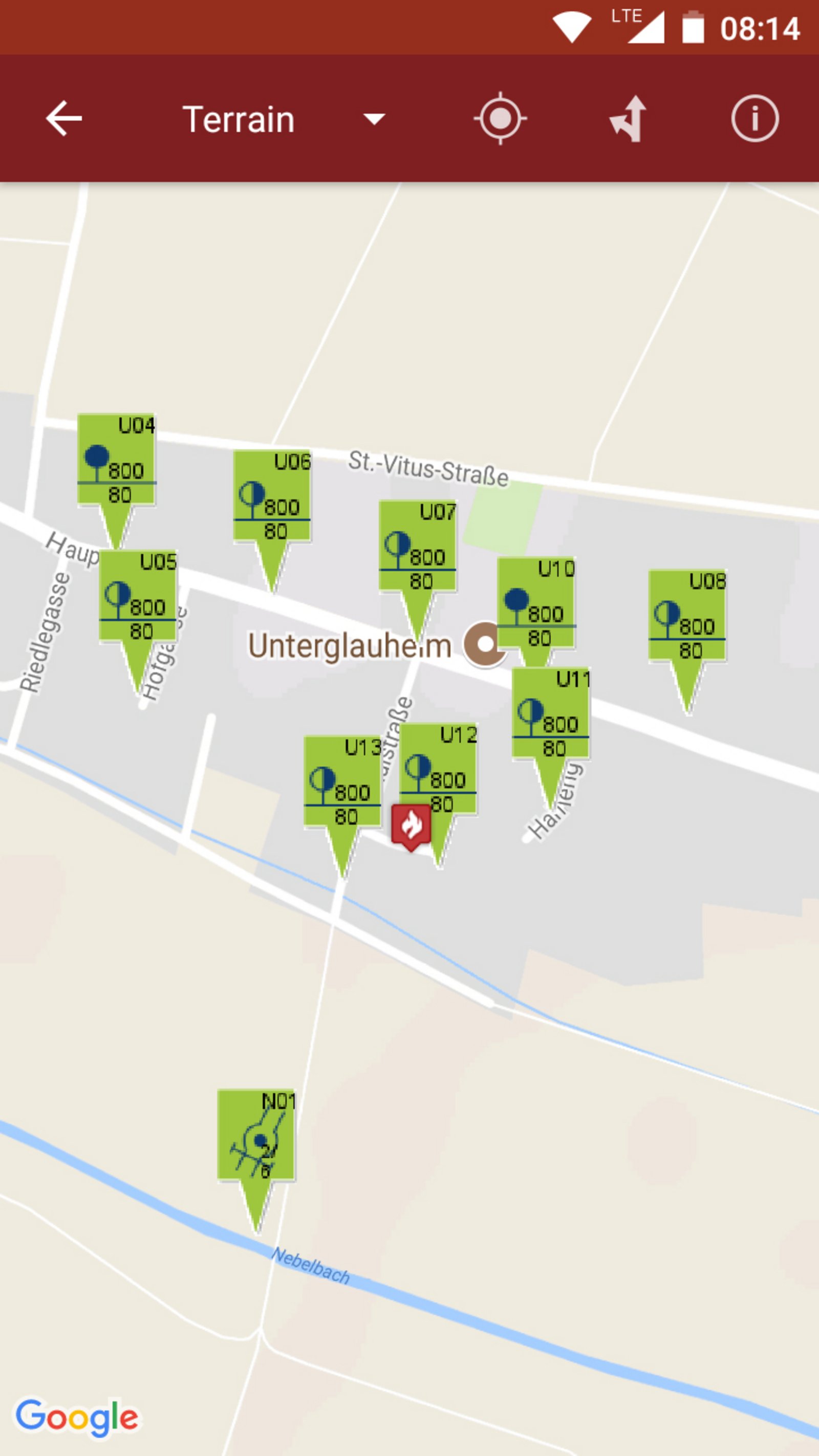aPager PRO ermöglicht die direkte Anzeige des Einsatzortes. Dabei spielt es keine Rolle ob der Alarm Koordinaten oder lediglich eine Adresse enthält. Innerhalb der App sehen Sie nicht nur Ihre eigene Position und die des Einsatzortes, sondern auch direkt die umliegenden Wasserentnahmestellen.